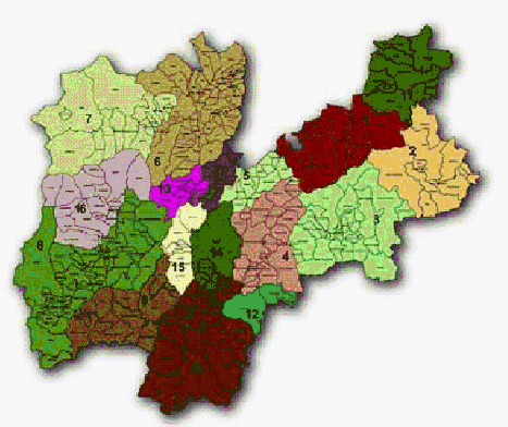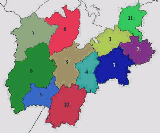 L'intero territorio della provincia è suddiviso in 11 comprensori (cfr. illustrazione) [27].