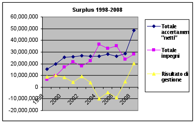 Figura 3 - Surplus della Soprintendenza, 1998-2008.