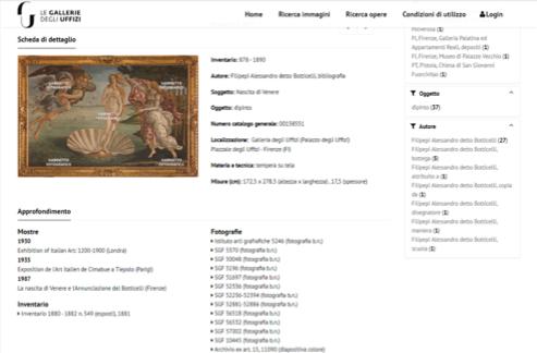 Se nel campo "autore" inserisco la parola "Botticelli", compare tra l'altro la scheda del celebre dipinto La nascita di Venere, di seguito riprodotta.